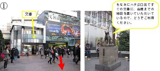(1) まず、JR渋谷駅に着きましたら、ハチ公口から当館へ出発です!