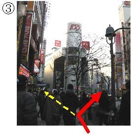 ここを斜めに抜けてファッションビル渋谷109を目指します。