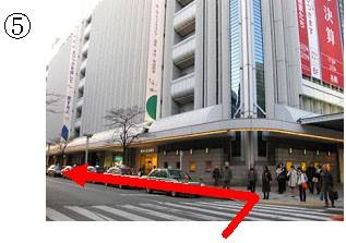 (5)東急百貨店本店跡地にぶつかったら、左折です。