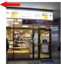 (4)109の脇の「A2」出口(左写真は地下、右写真は路上の景観)。