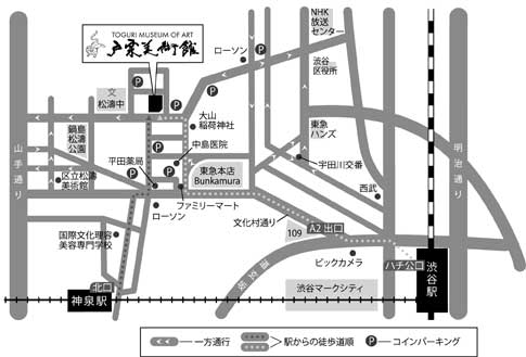 当館の最寄駅は渋谷駅と京王井の頭線の神泉駅とがありますが、ここでは渋谷駅から当館までの道順をご案内します。