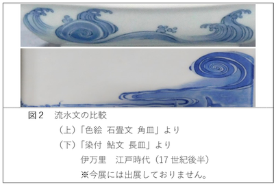 このように、本作の構図や流水文には17世紀後半の特徴があらわれています。その一方で、17世紀末期以降の要素も見ることができます。