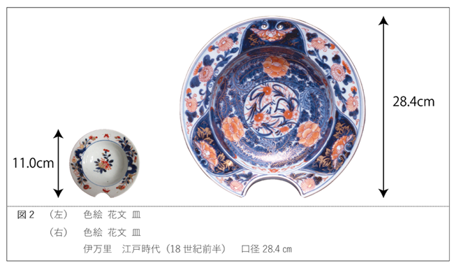 本作の場合、興味深いのはその大きさです。通常の伊万里焼の髭皿は口径25~30cm程度。対して、本作は口径11cmと(図2)、とてもではありませんが本来の用途には役立ちそうにありません。