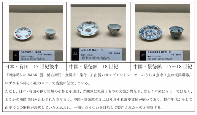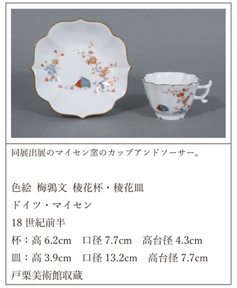 紫陽花のほのかな色彩が日ごと深まるとともに、開催中の『西洋帰りのIMARI展-柿右衛門・金襴手・染付-』の会期終了が近づいてまいりました(~6月29日)。今月の学芸の小部屋は、同展の出展品からカップアンドソーサーをご紹介いたします。