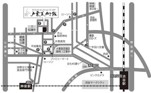 当館の最寄駅は渋谷駅と京王井の頭線の神泉駅とがありますが、ここでは渋谷駅から当館までの道順をご案内します。