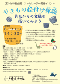 「やきもの絵付け体験 昔ながらの文様を描いてみよう」は、8/9(土)午前中に追加回を開催いたします。